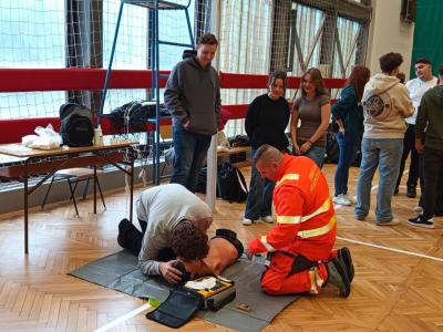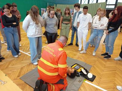 Mentősök a gyakorlatban címmel Dr. Tóth György, az Országos Mentőszolgálat Nyíregyházi Mentőállomásának vezetője irányítása mellet mentőautó bemutató és újraélesztési gyakorlat résztvevői lehettek az érdeklődők.
